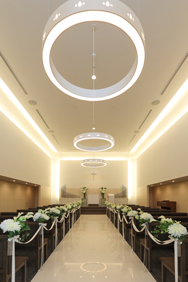 またチャペルロビーはトップライトより自然光が入る屋内ガーデンを計画し、明るく外部のような心地よい空間を実現しています。