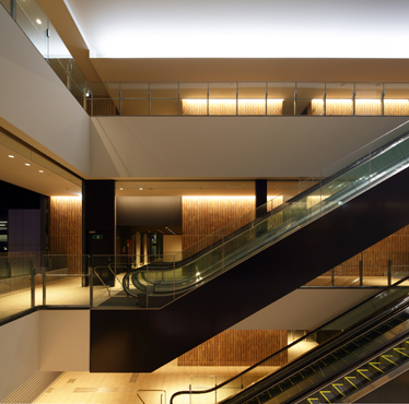壁面緑化及び階段状の各屋上には屋上緑化をなるべく多く設置し、立体的な緑化空間を計画する事で、敷地北側にあるつつじ公園と敷地内の緑の連続性を創出しています。