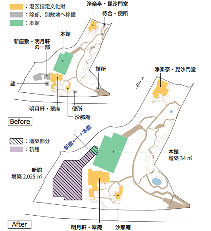 1964年に実業家・畠山一清(即翁)が創設した、茶道具を中心に国宝6件、重要文化財33件を含む約1300件を所蔵する私立美術館のリニューアル計画です。開館60年を迎える2024年10月にリニューアルオープンしました。