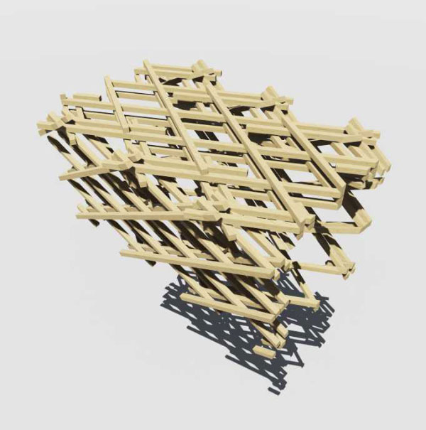一般流通小径木材は、主に住宅建築で利用されている材料であり、大断面集成材に比べ小径であるためロングスパン構造への適用は不向きとされてきました。