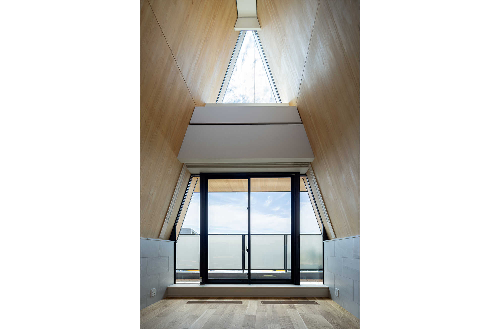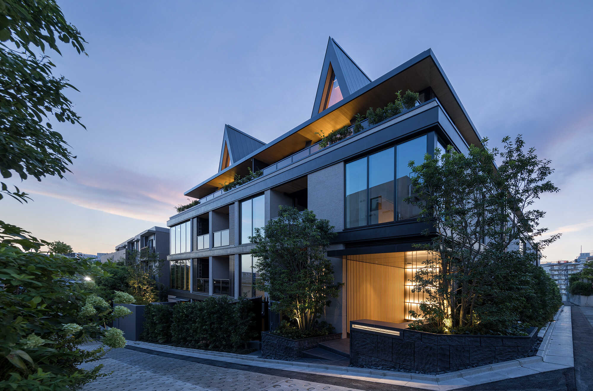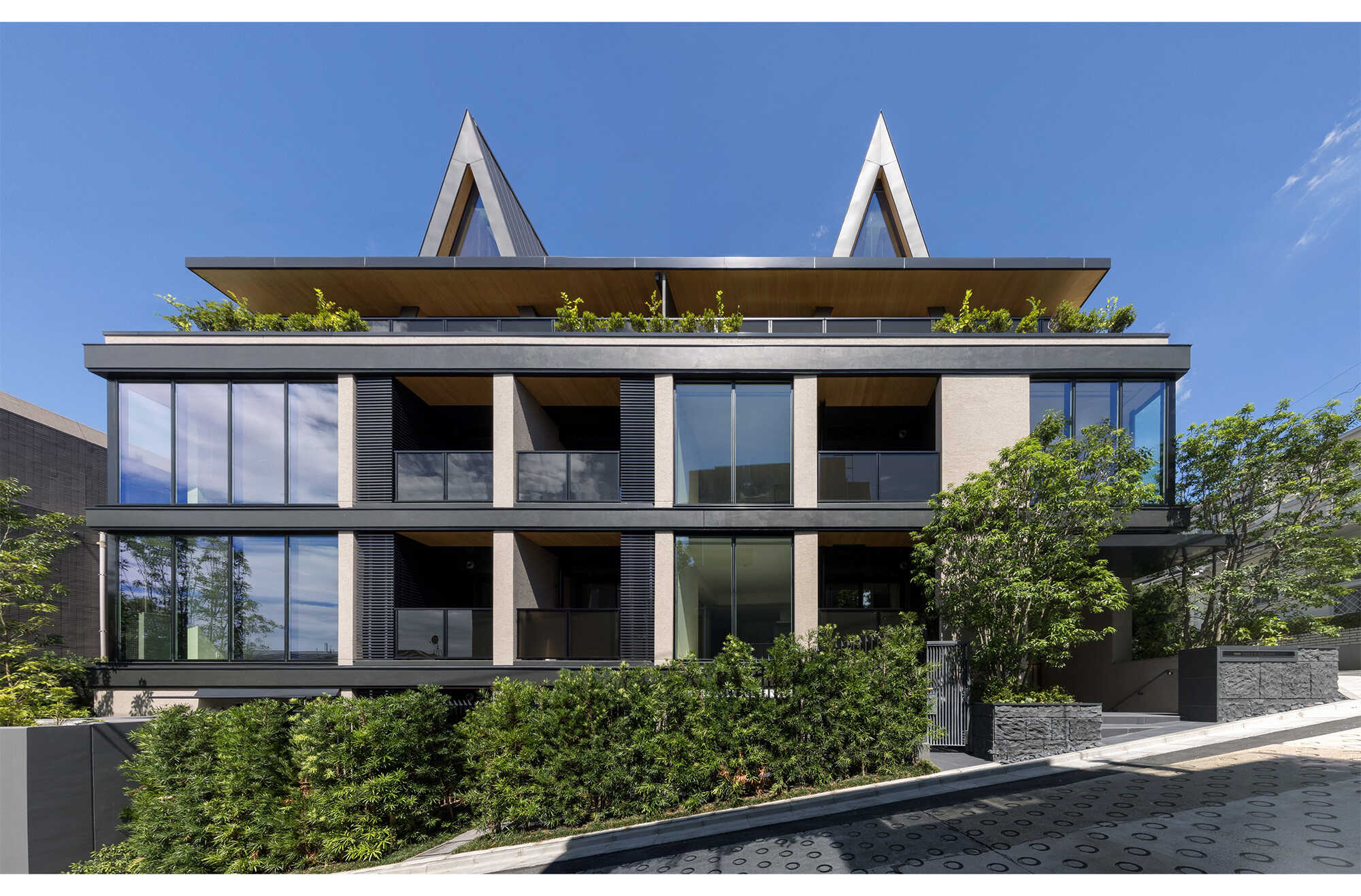 独自の構造を活かしたアイコニックな三角形屋根の外観デザイン