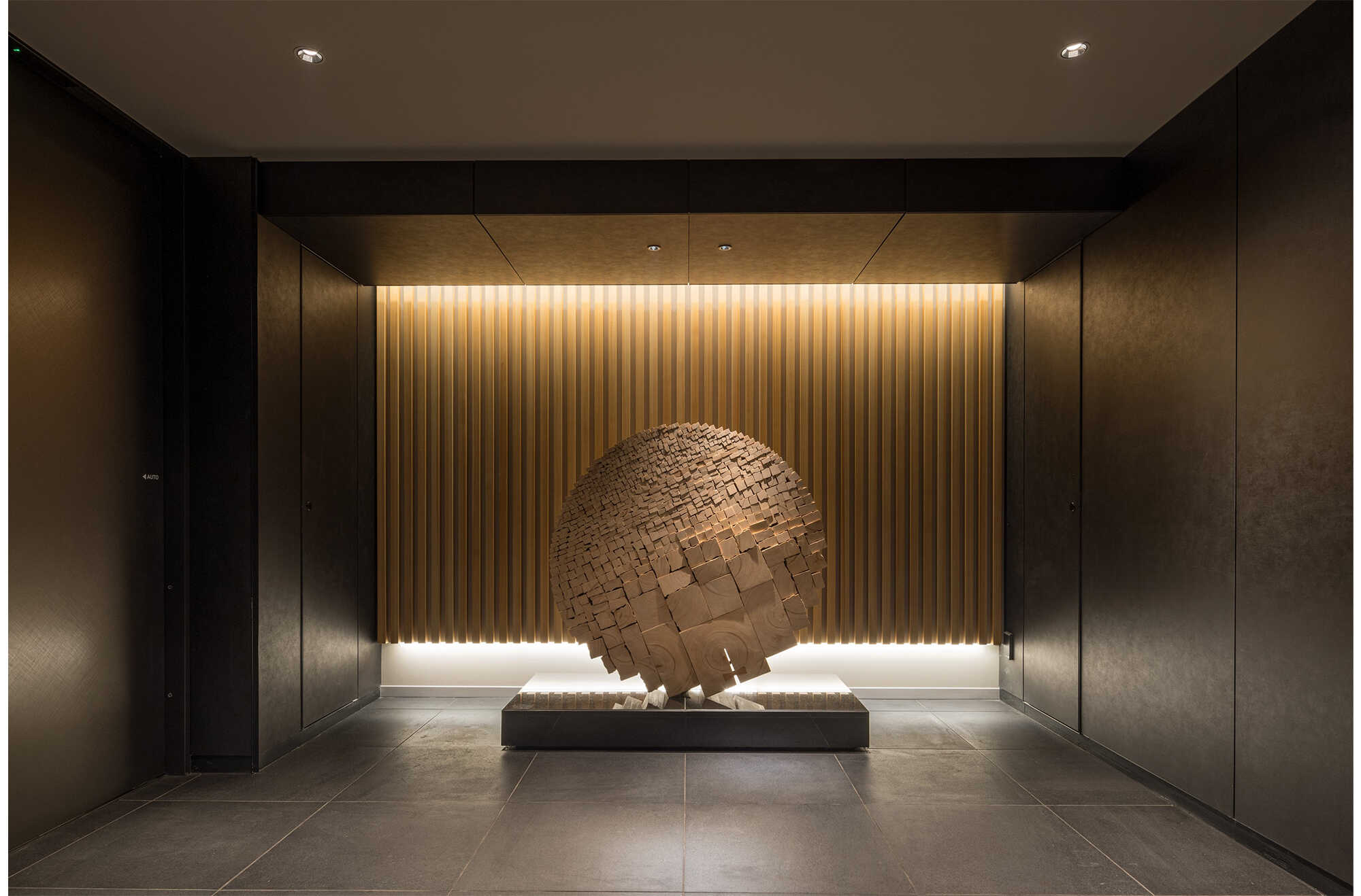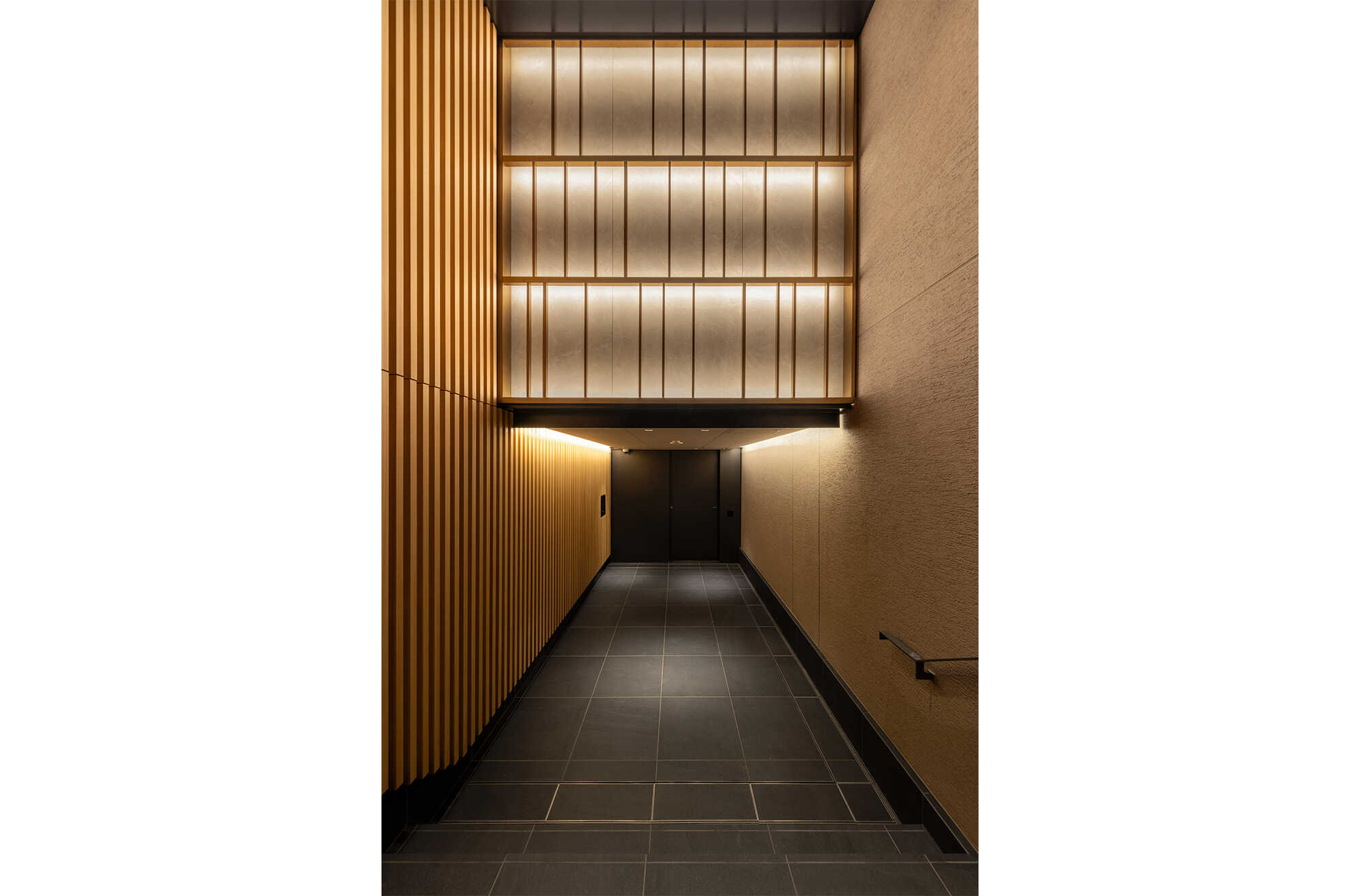“木”を活かした建築であることが感じられるよう、建築の内装・外装の多くの箇所で無垢のヒノキ材を仕上げとして採用し、“木”の香りや質感が、潤いのある都心の暮らしを演出する住まいを目指しました。