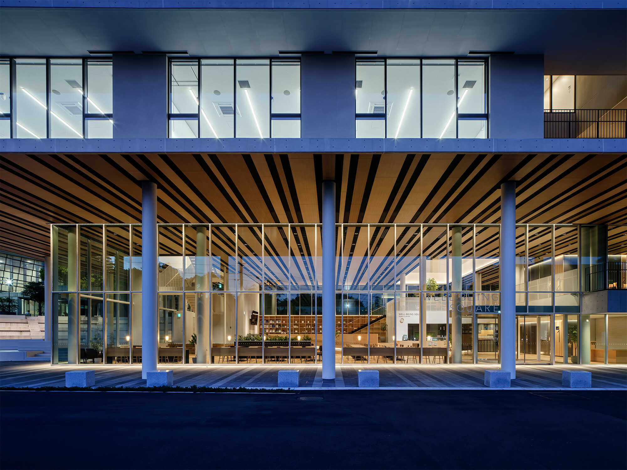 ウェルビーイングスクエアおよび中央吹抜け部にはサーカディアン照明制御を計画し、空間を演出しました。
