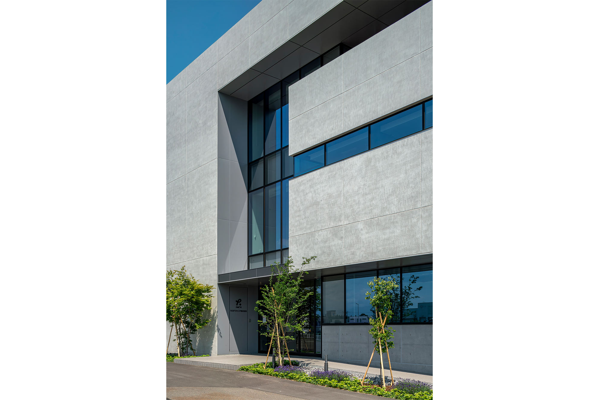 構造種別に適したRC外壁とすることでファサードに重厚な印象を与えて既存工場との差別化を図り、一連の既存工場に新しい「顔」を創出しました。